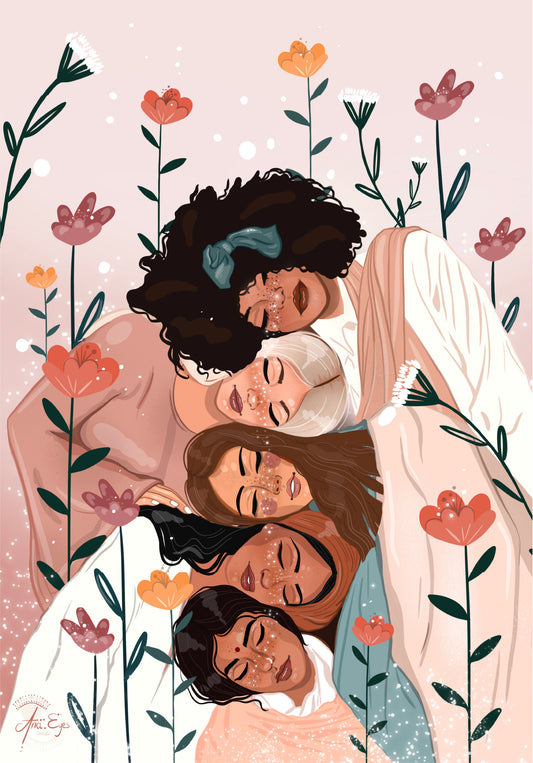Alle Illustrationen wurden von Künstlerinnen aus verschiedenen Kulturen und Religionen entworfen – und doch sind wir verbunden. Gemeinsam sind wir stärker.